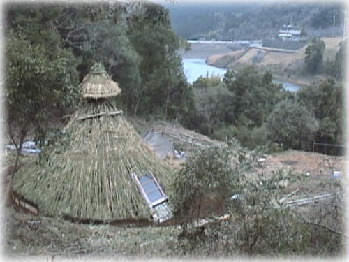 ほぼ完成した竪穴式住居、弥生村の自然に溶け込んでほのぼのとした雰囲気をたたえていますね。