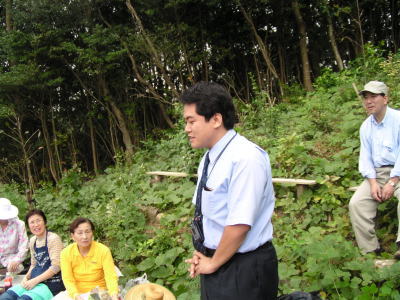 全景、川崎さんが蛇三線で自慢の喉を披露中!